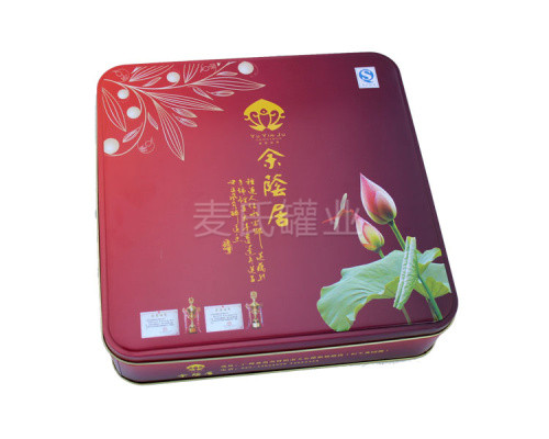 此款大號(hào)月餅鐵盒子,結(jié)構(gòu)為三片式天地蓋結(jié)構(gòu),內(nèi)卷線鑼底。印刷為單面四色+1專(zhuān)色處理,罐、身、底均有印刷,外過(guò)啞油,內(nèi)過(guò)符合國(guó)標(biāo)的食品級(jí)金油設(shè)計(jì)。其材質(zhì)為國(guó)產(chǎn)0.23mm馬口鐵制成,具有優(yōu)異的馬口鐵料,具有優(yōu)異的密封性,防潮性能特點(diǎn),適合您的月餅產(chǎn)品不易受潮變質(zhì),可適應(yīng)長(zhǎng)期運(yùn)輸流通的包裝要求。