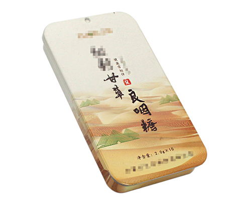 方形滑蓋甘草良咽糖鐵盒_麥?zhǔn)瞎迾I(yè)食品鐵盒包裝——麥?zhǔn)瞎迾I(yè)有限公司,擁有十二年制盒經(jīng)驗(yàn)、五百多臺(tái)制盒設(shè)備、十多名模具開發(fā)師傅、三百多名訓(xùn)練有素的操作工、五條自動(dòng)化制盒生產(chǎn)線、2000平方米的包裝車間、五十多名銷售精英、一站式鐵盒包裝供應(yīng)商、20天內(nèi)完成,長(zhǎng)方形保健品鐵盒定制熱線:18676322818.