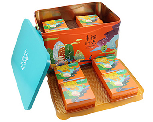 這款中秋食品大鐵盒包裝表面有雕刻工藝處理,雕刻(激凸)分為平雕與浮雕,浮雕工藝制作出來的鐵盒產(chǎn)品,圖案文字會以3D立體化的視覺方式展現(xiàn)出現(xiàn),對產(chǎn)品品牌宣傳起到了畫龍點睛的作用。我司還可制作出裱紙、貼鉆、鐳射等工藝效果,盡力滿足客戶多方面的制作需求。