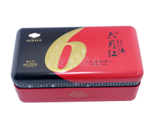 此款枸杞子鐵盒,采用單面1專色+四色印刷工藝制作,外過光油,內(nèi)過食品金油,鐵盒整體為蓋、身、底印刷處理。本鐵盒為240*143*83mm的規(guī)格尺寸,可包裝450克的枸杞,盡力的滿足客戶的定制要求。