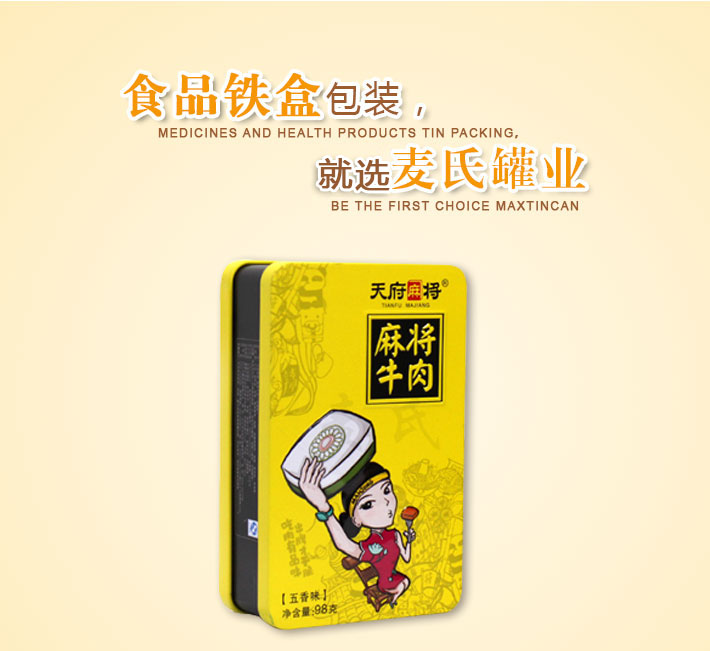 食品包裝鐵皮盒子-訂做食品鐵盒子,食品金屬包裝鐵盒,食品馬口鐵盒加工結(jié)構(gòu)尺寸:160*100*51mm,材質(zhì):0.23mm鍍錫馬口鐵制作;印刷:單面或雙面四色/專色印刷??勺黾ね?。雕刻工藝??商峁┰O(shè)計(jì)稿件由鐵盒生產(chǎn)廠家麥?zhǔn)瞎迾I(yè)訂做!